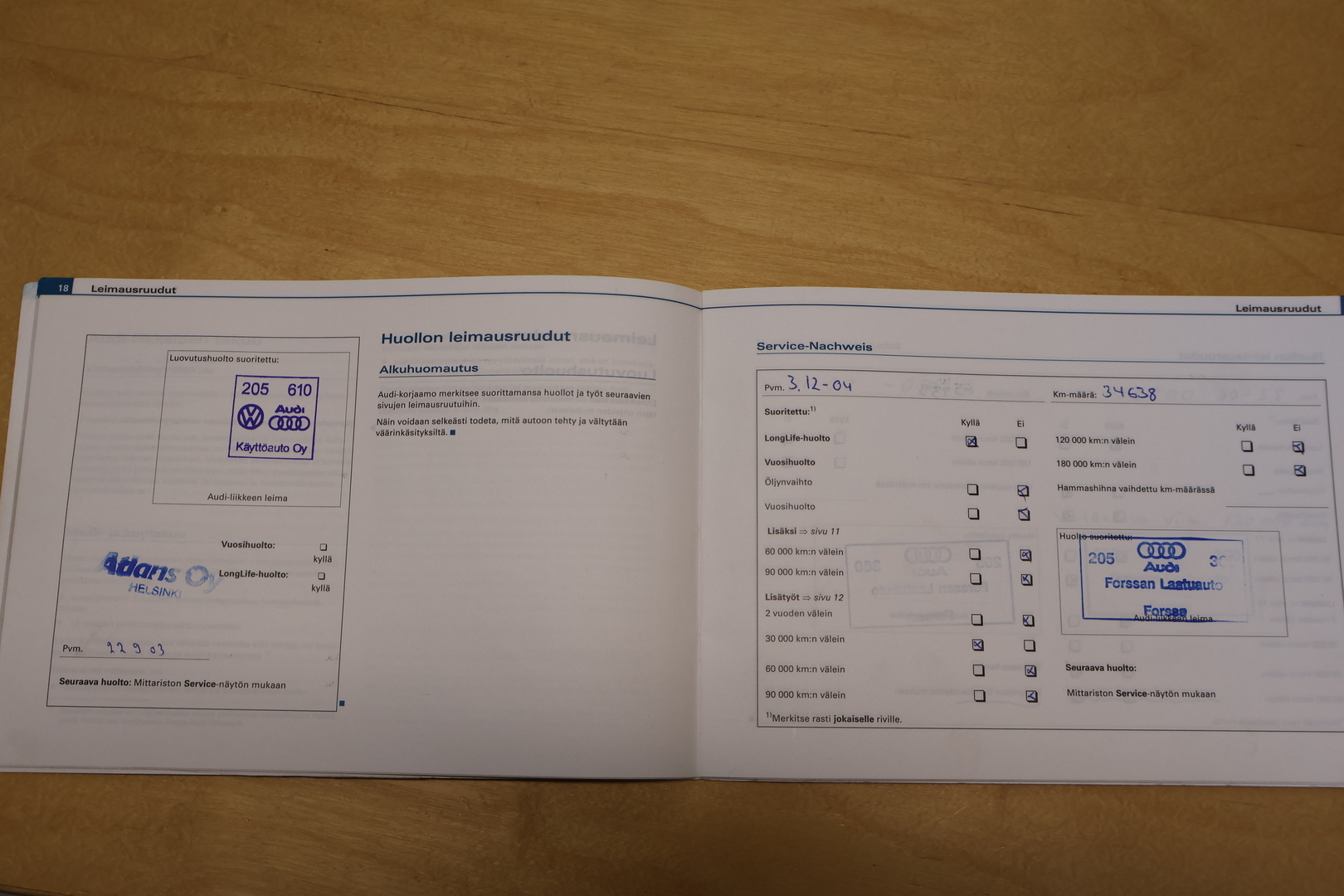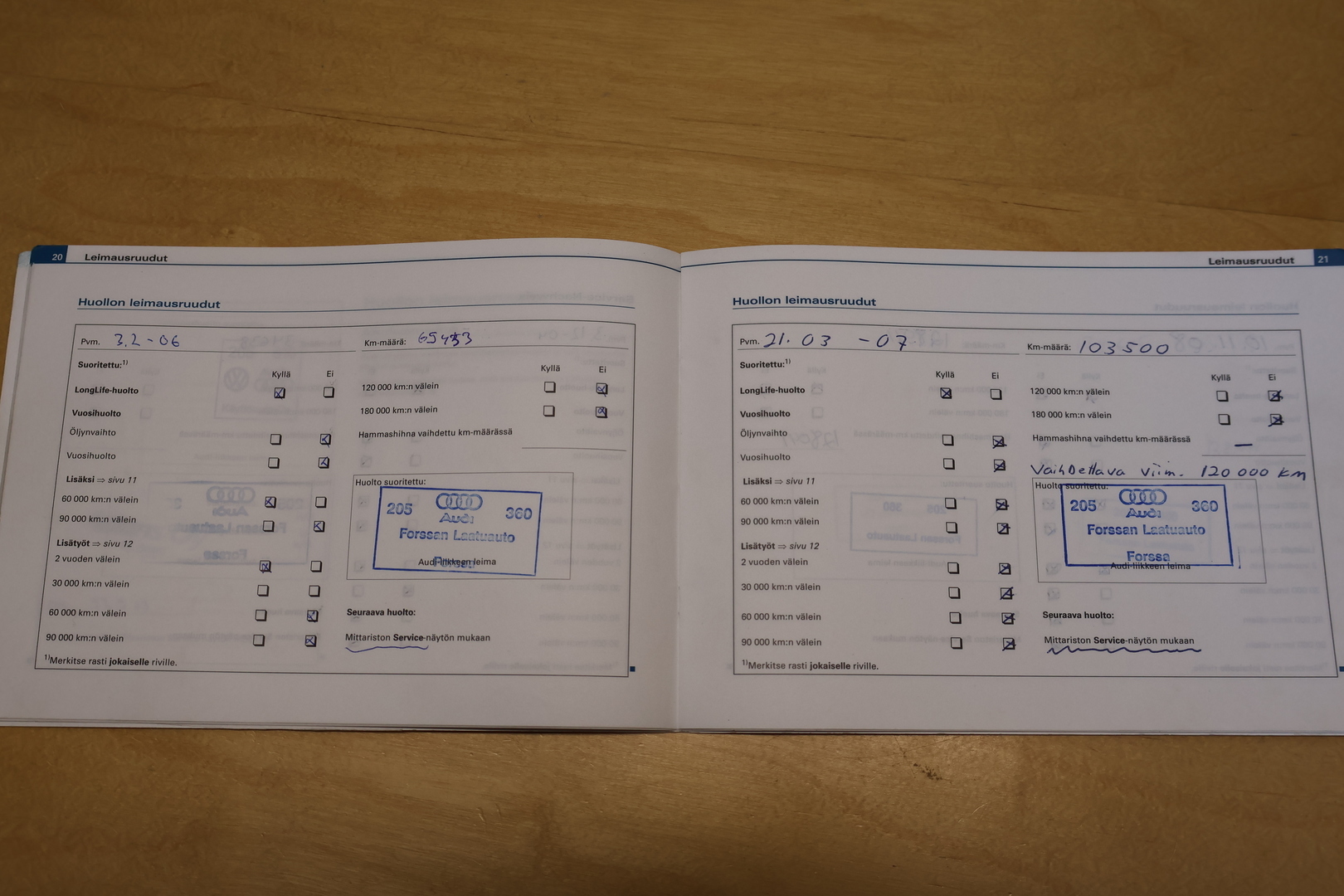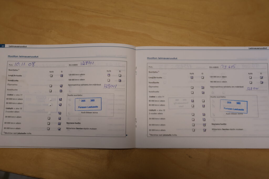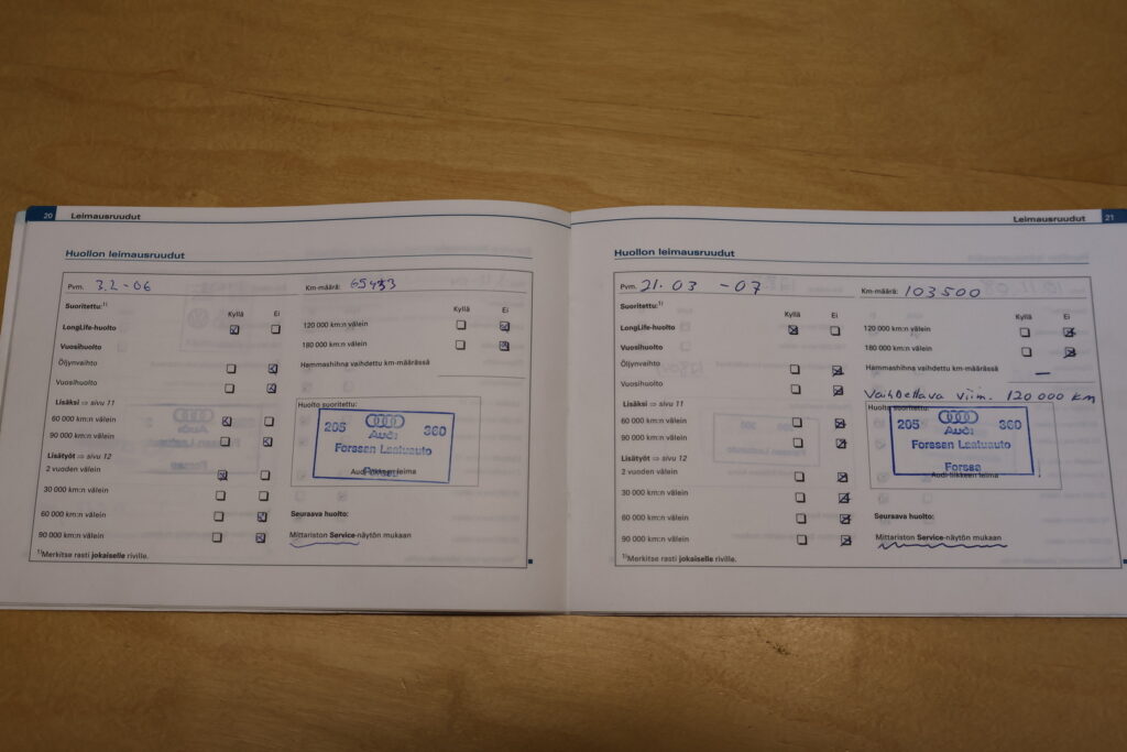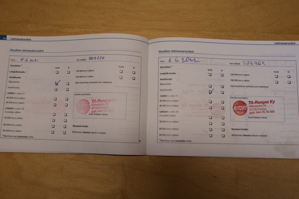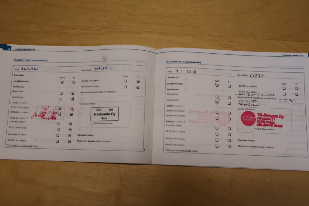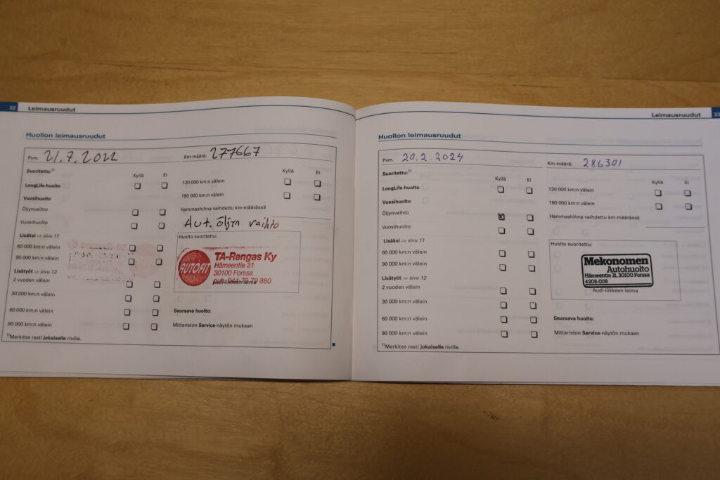 - Täydellinen huoltokirja
