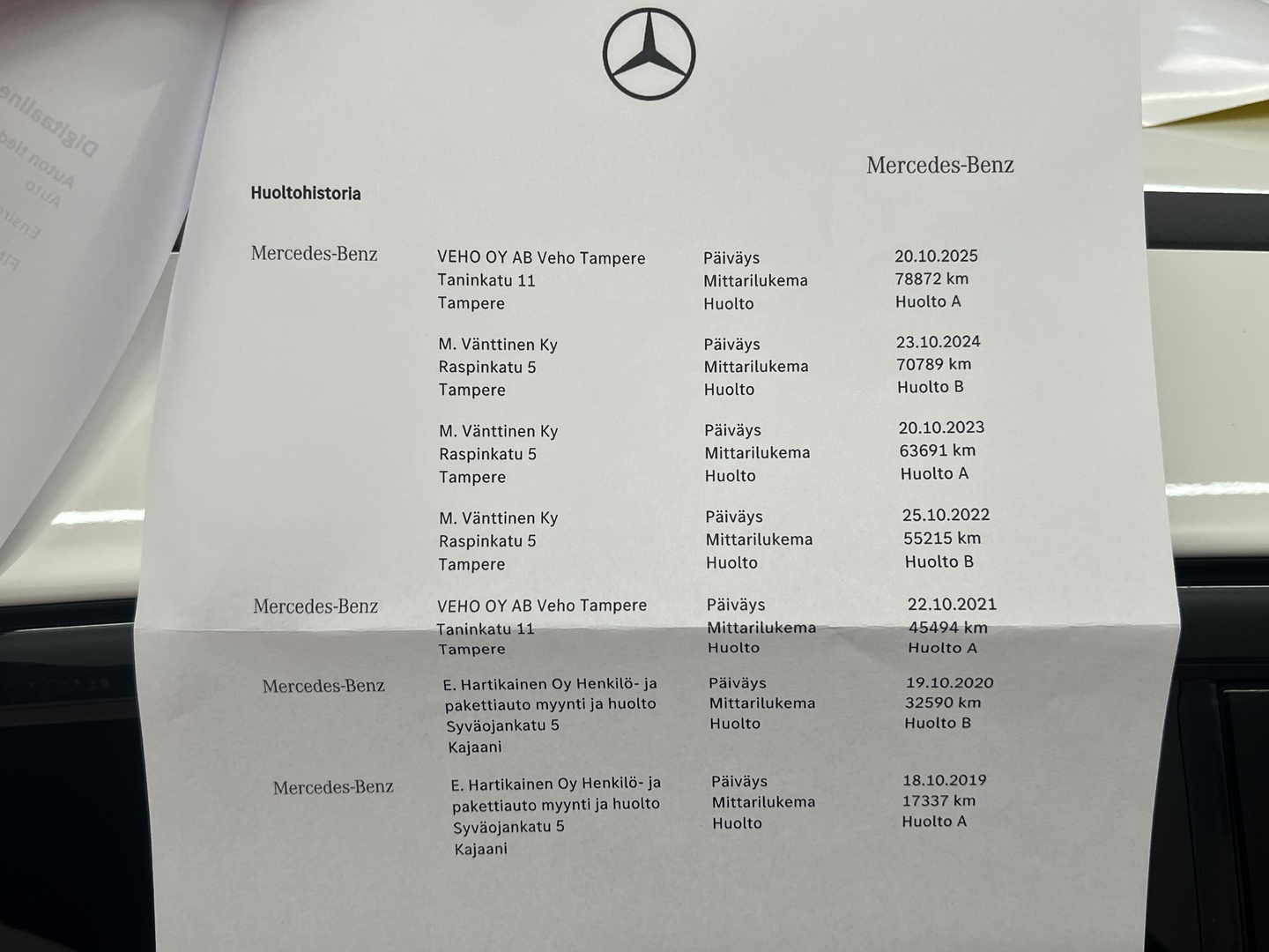 - Täydellinen merkkiliikkeen huoltokirja