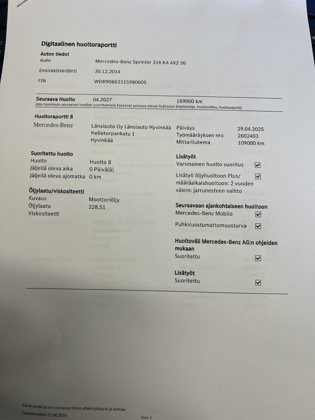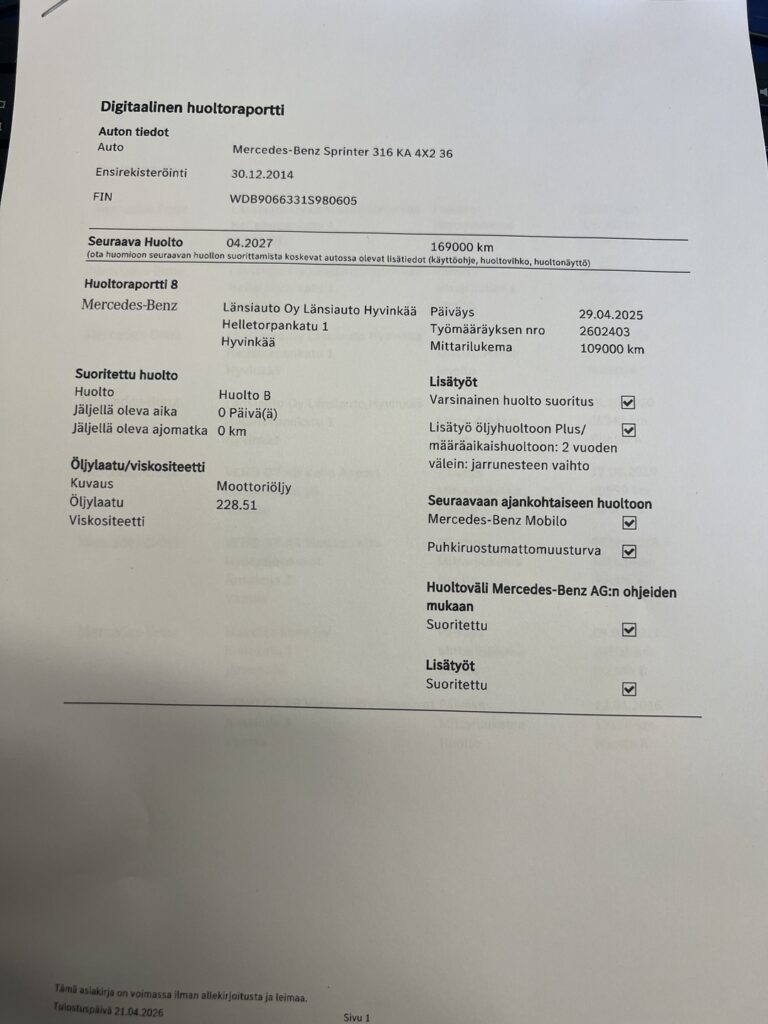 - Sähköinen huoltokirja
