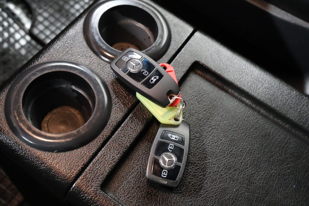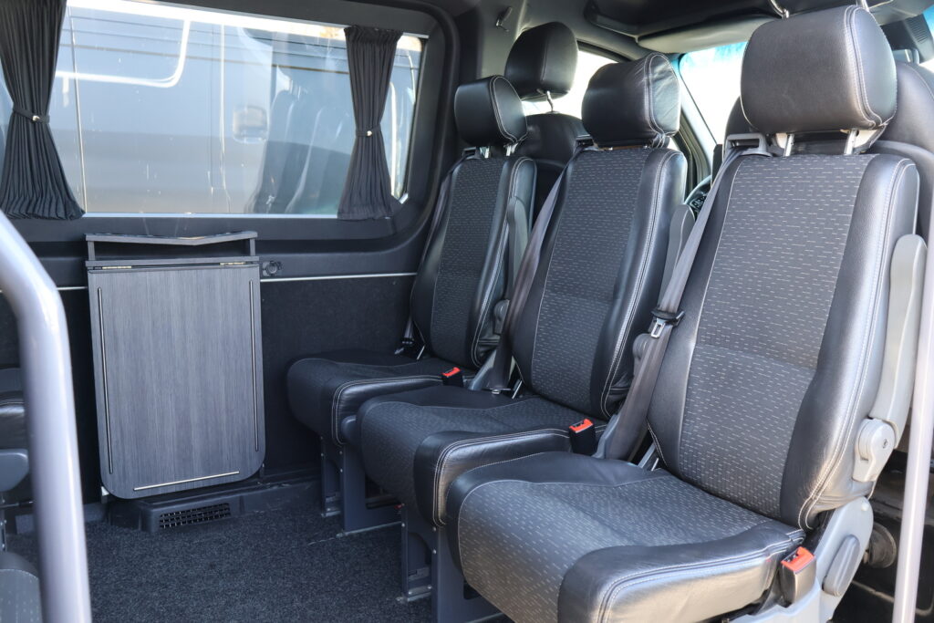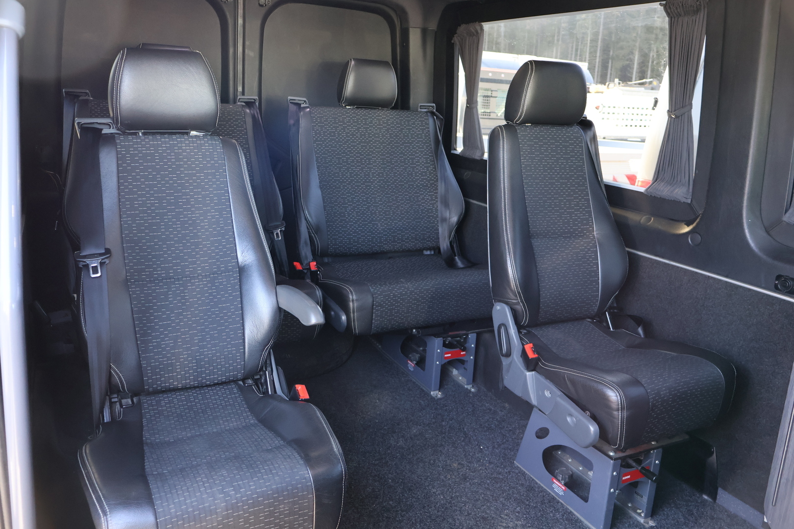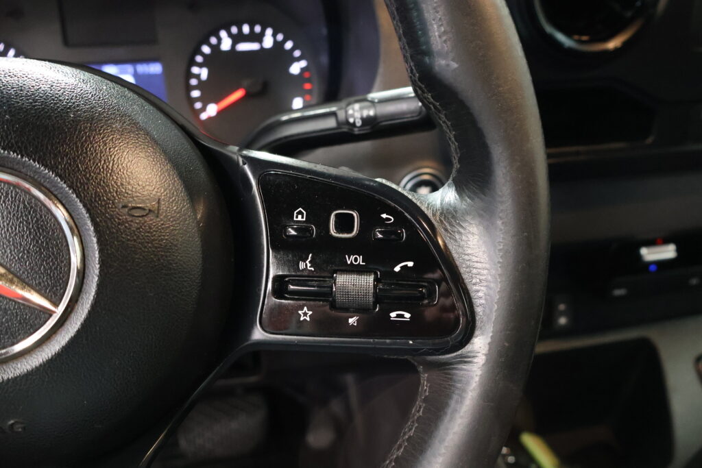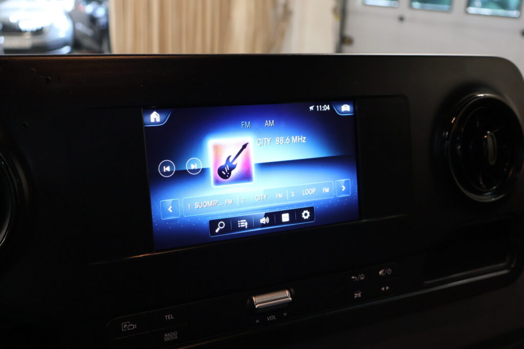 - Mukavuusniskatuet kuljettajalle ja apumiehille. Verkkotasku, kuljettajan istuimen selkänojassa.