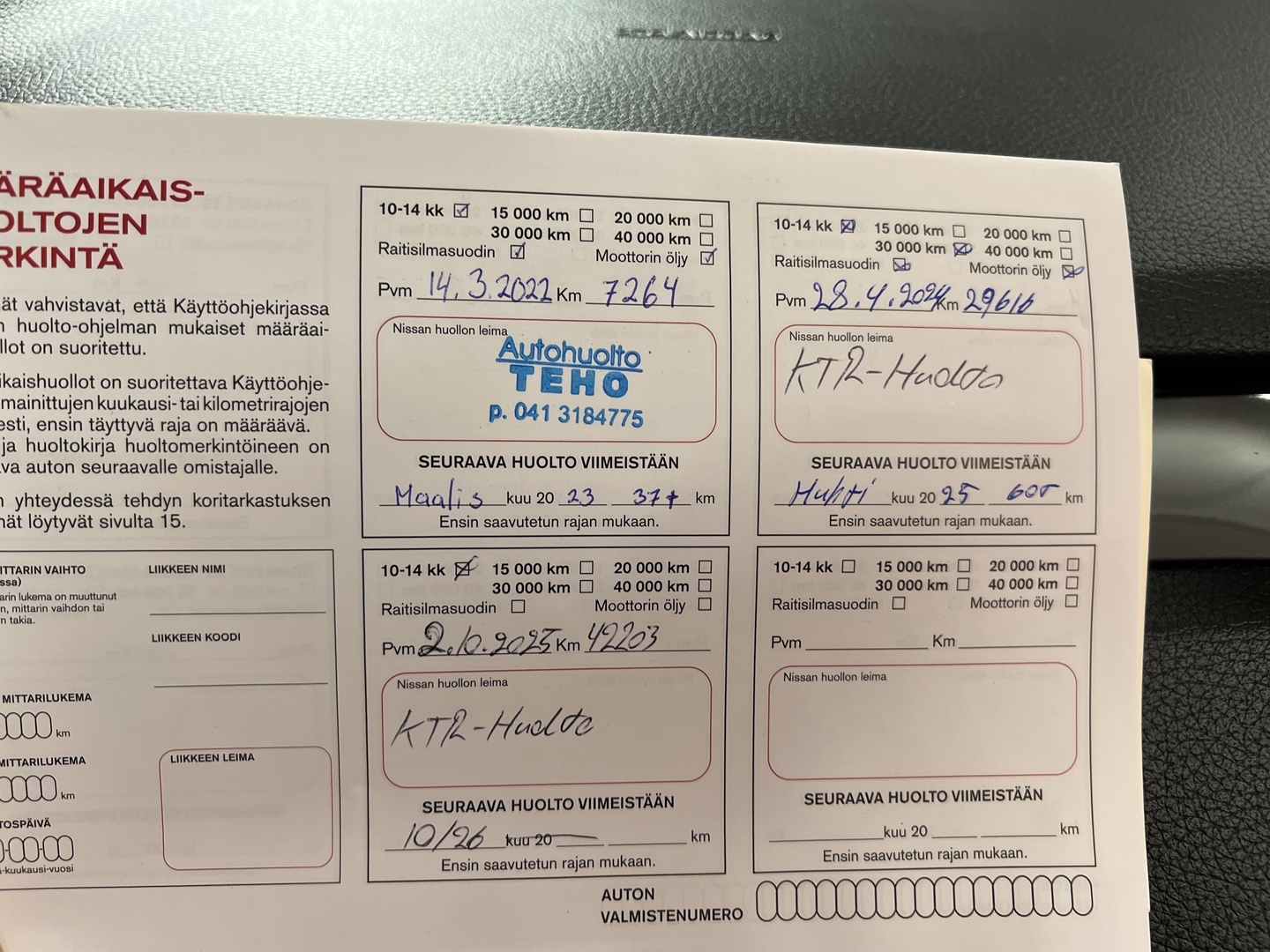 - Täydellinen huoltokirja