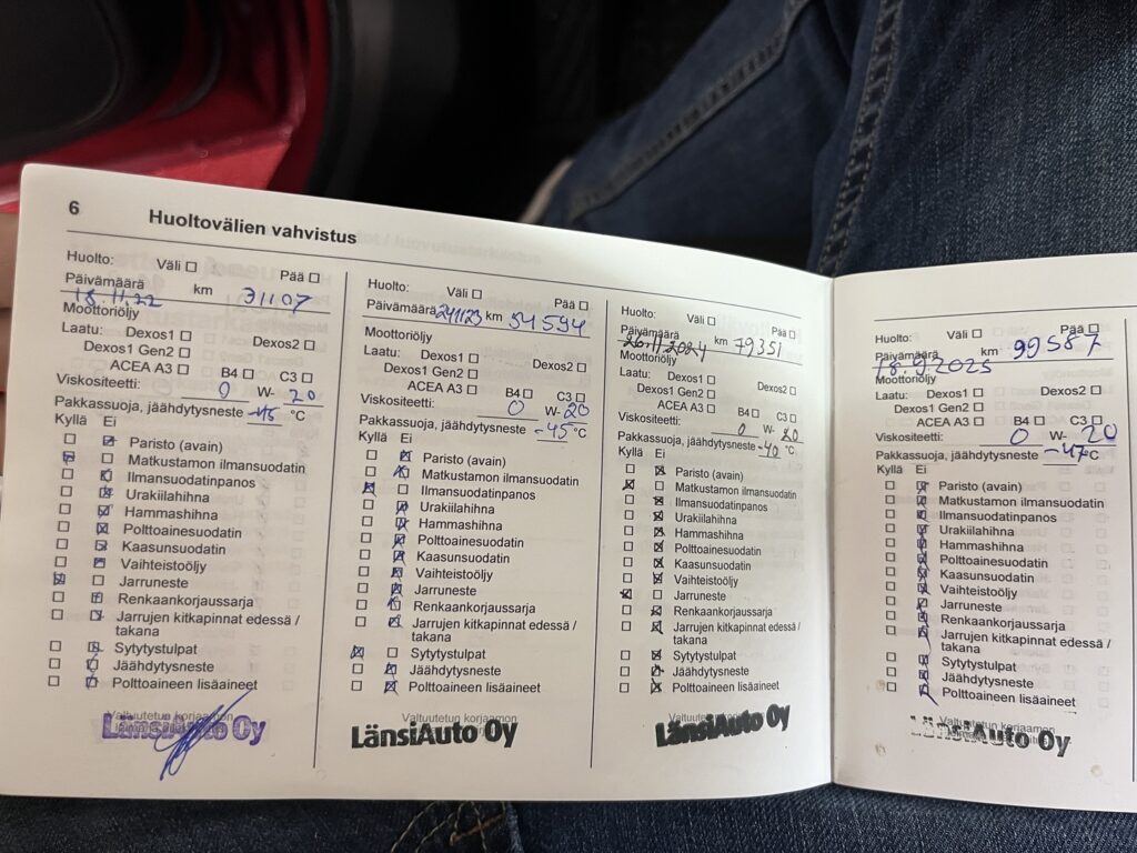 - Viimeisin huolto tehty 99 tkm 9/2025