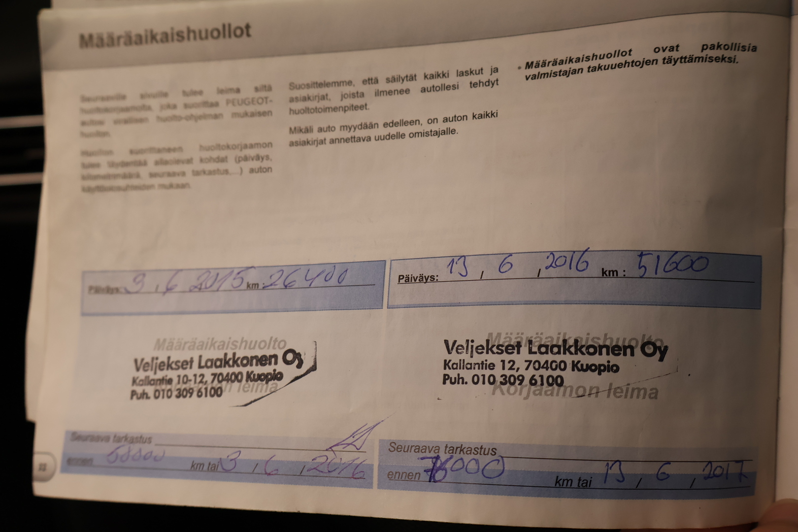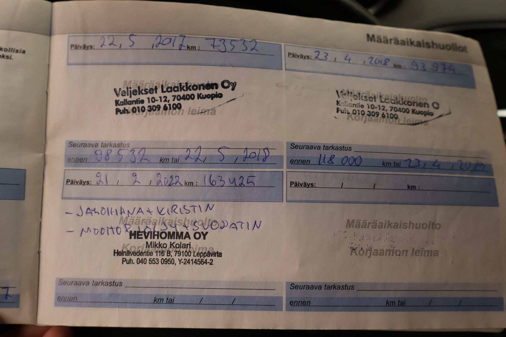 - Täydellinen huoltokirja