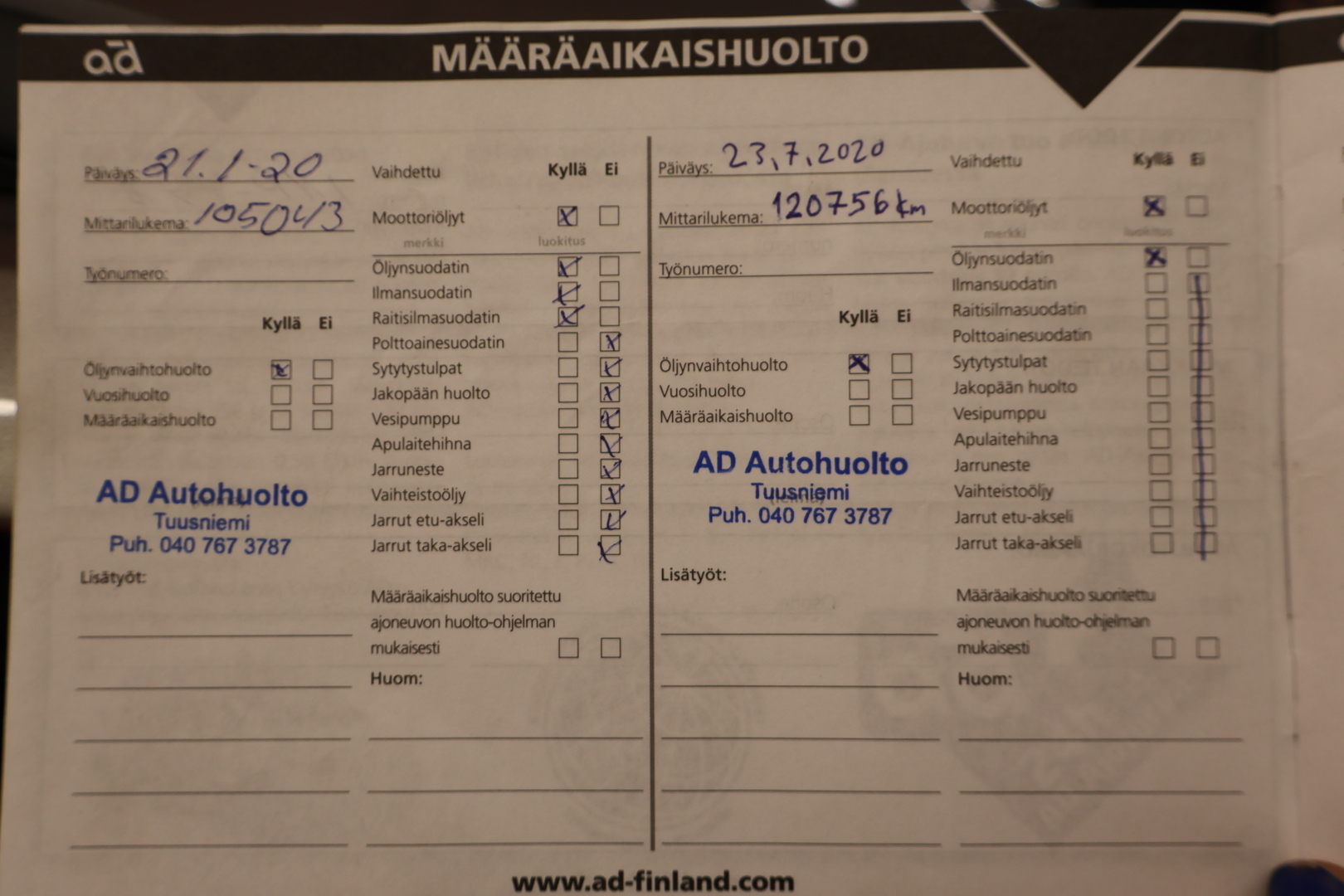 - Huoltokirja