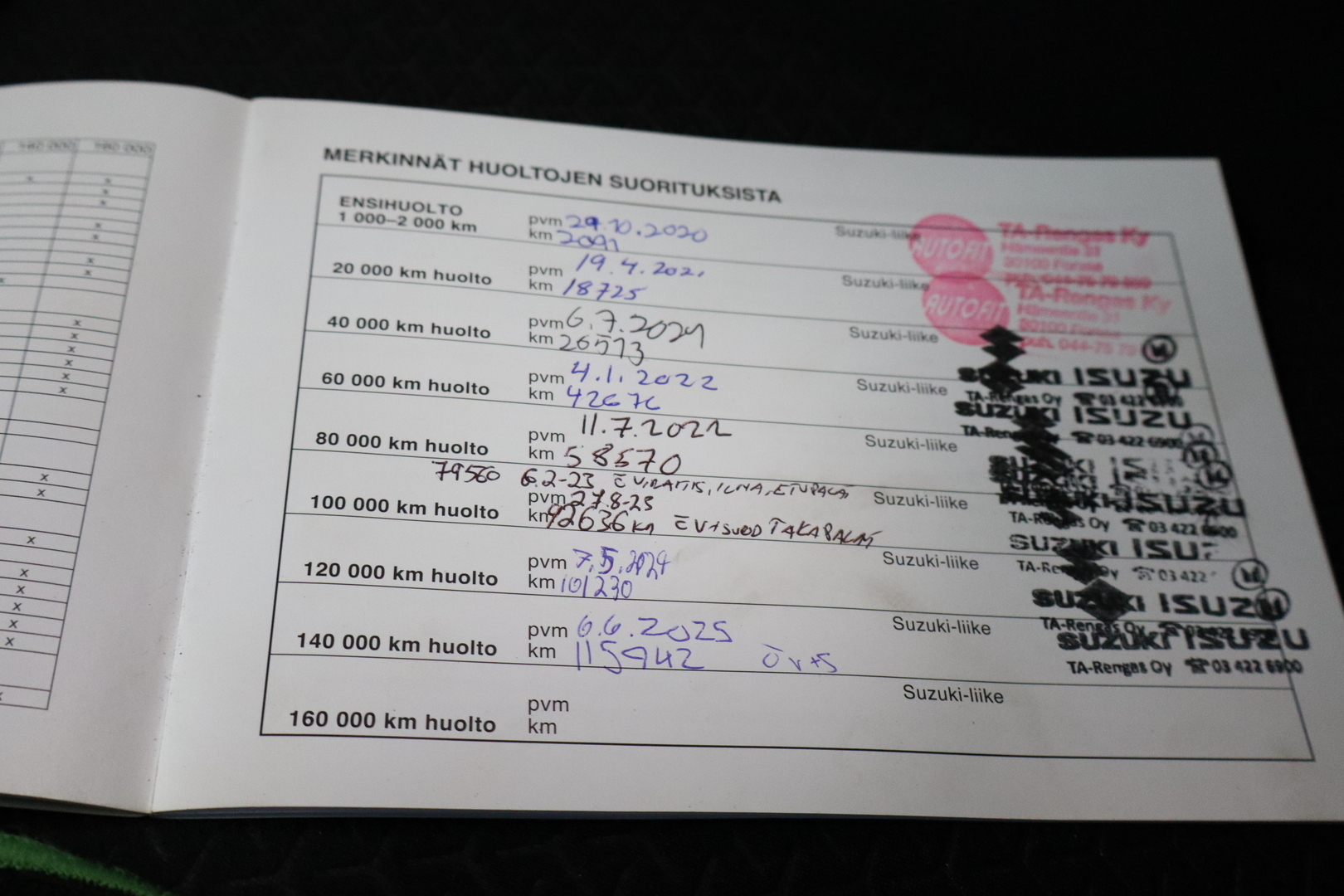 - Täydellinen huoltokirja