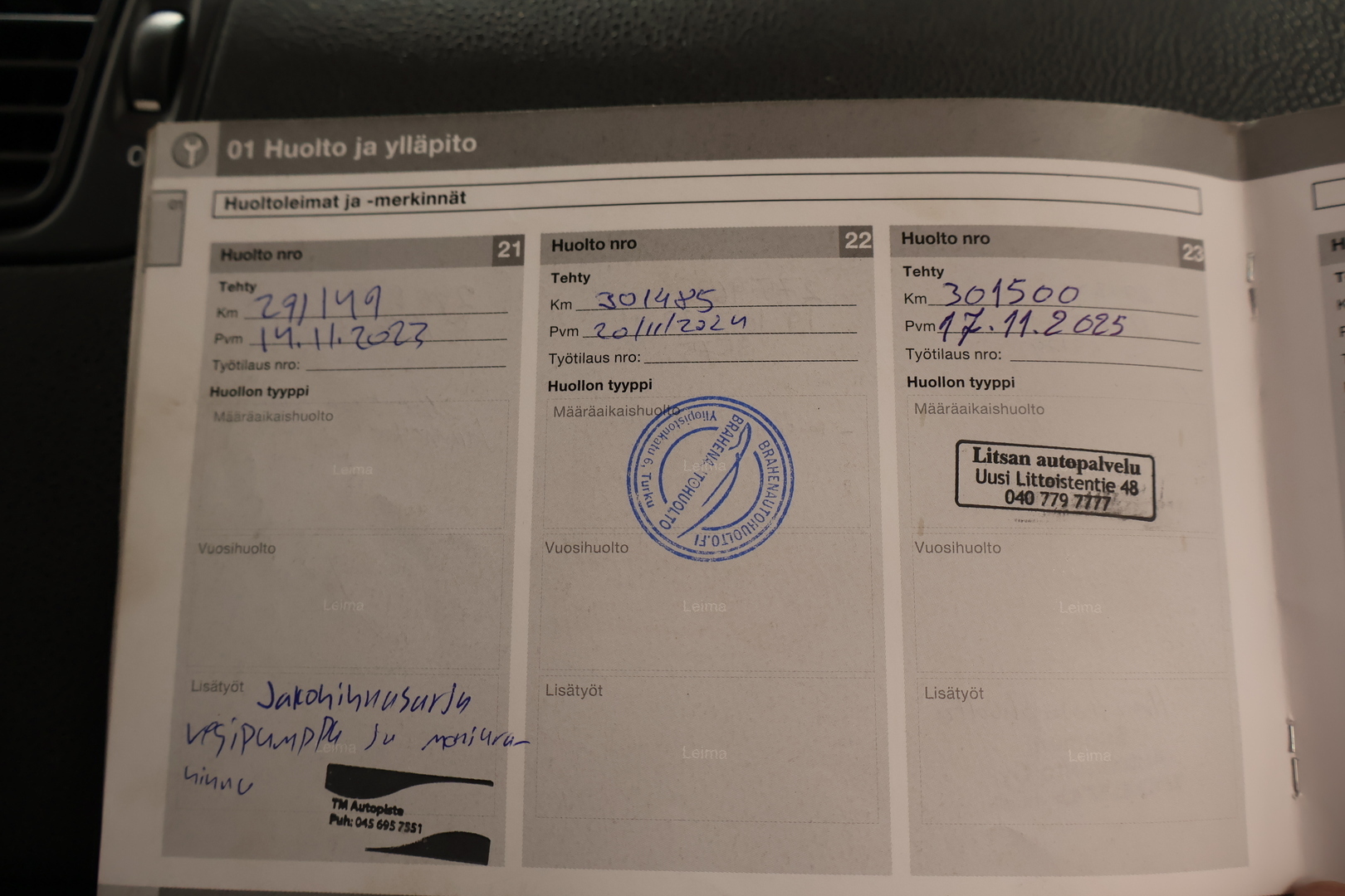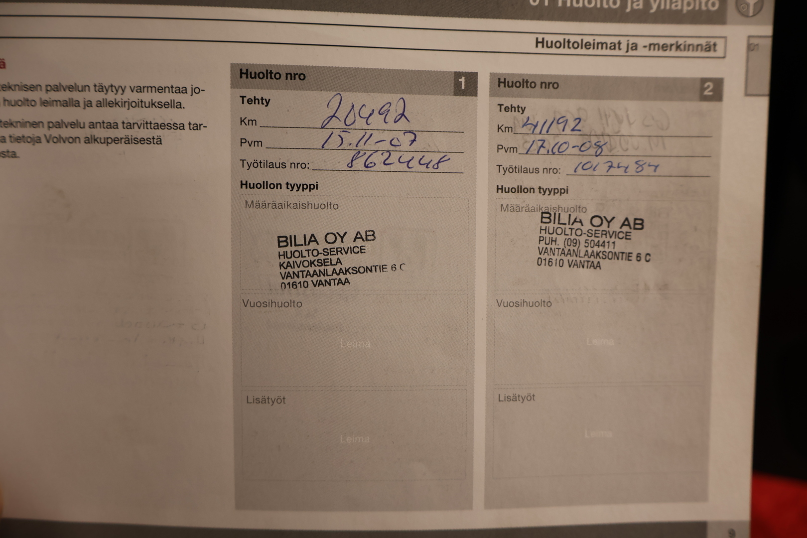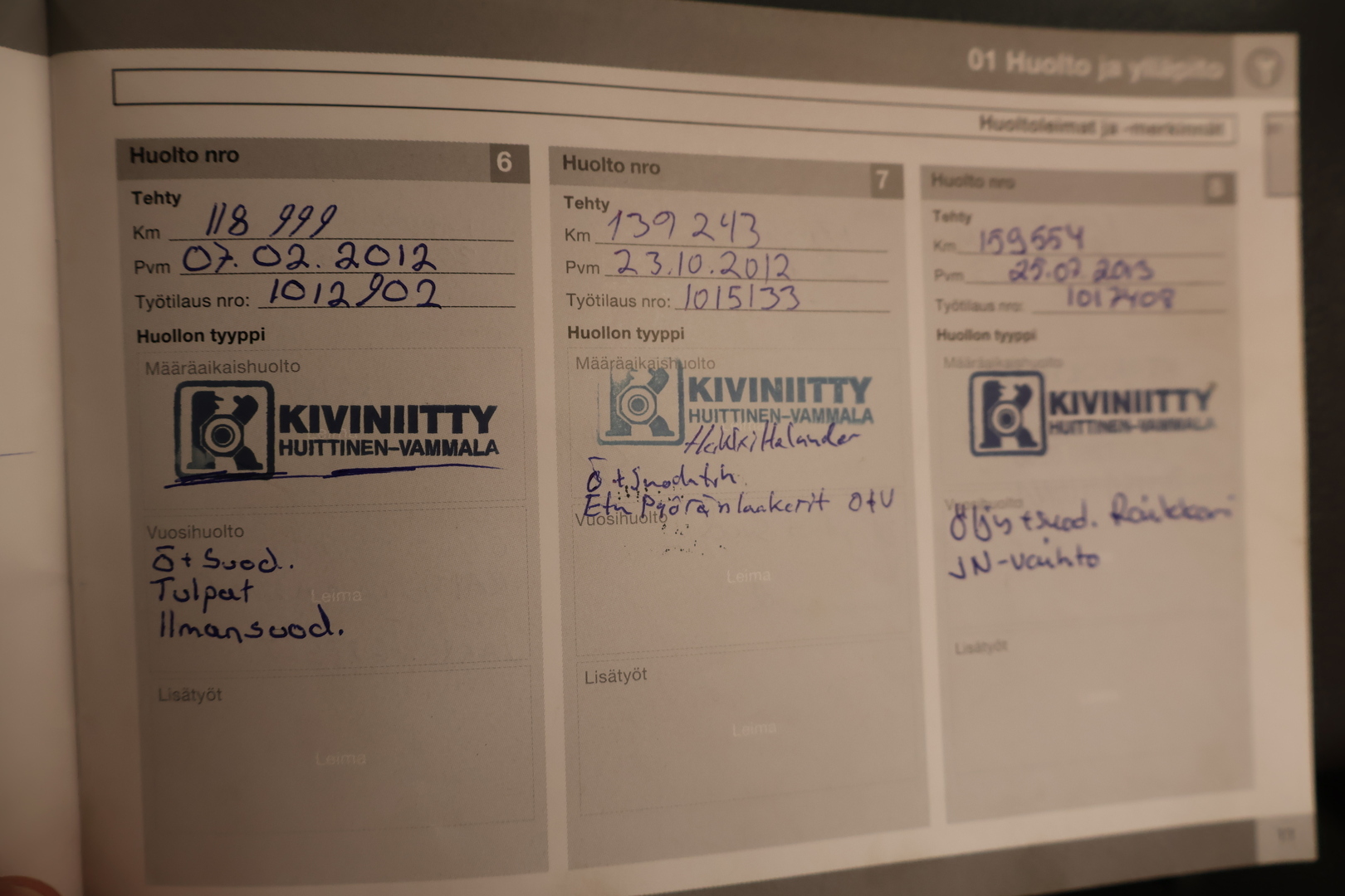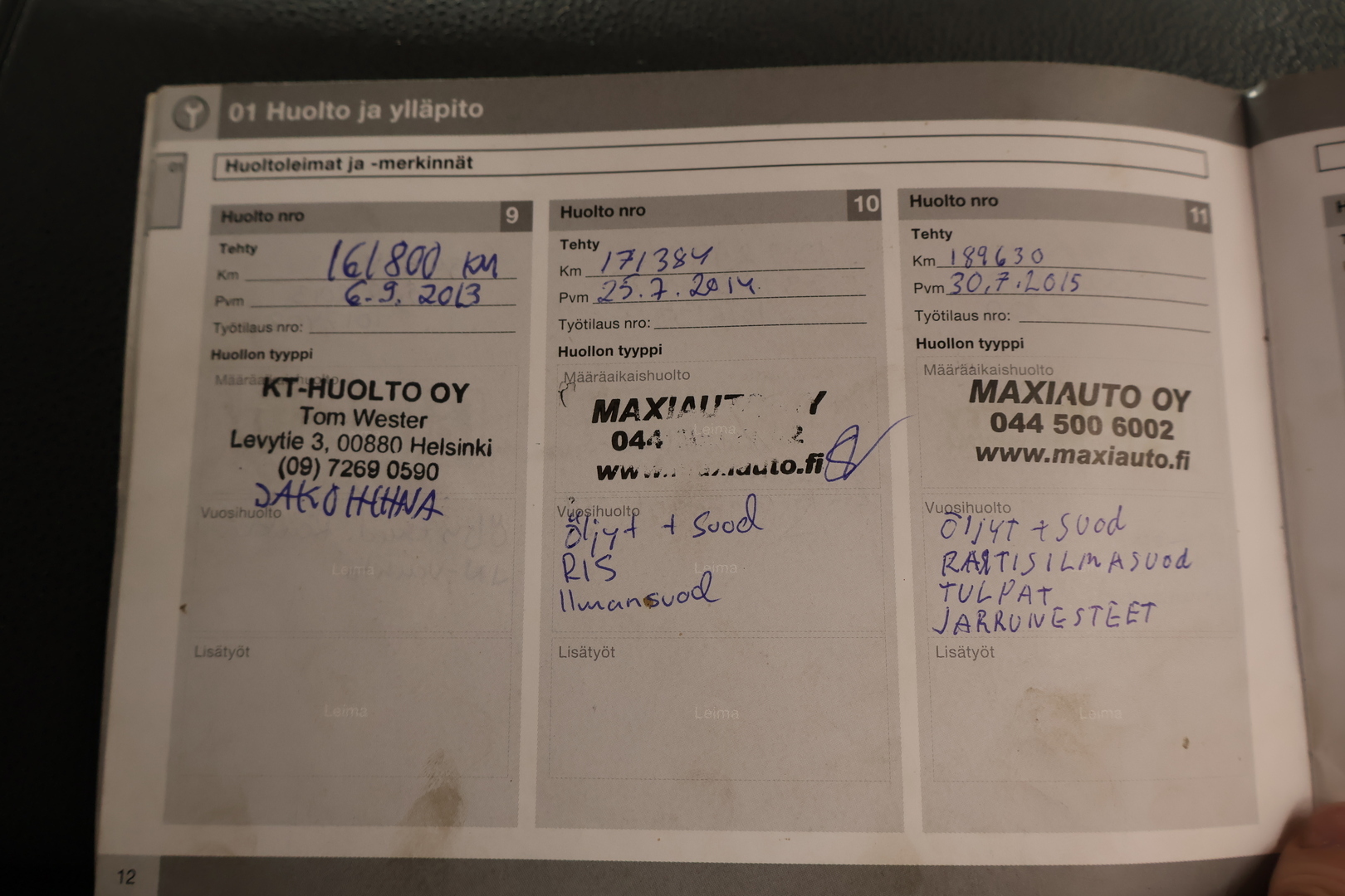 - Täydellinen huoltokirja