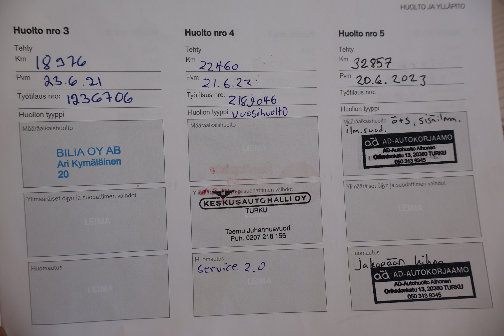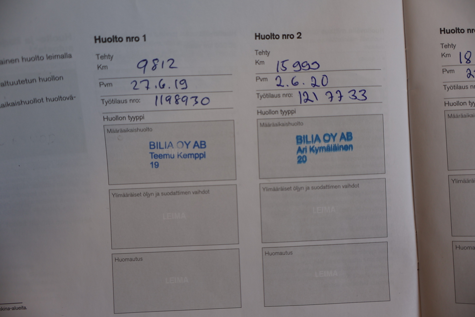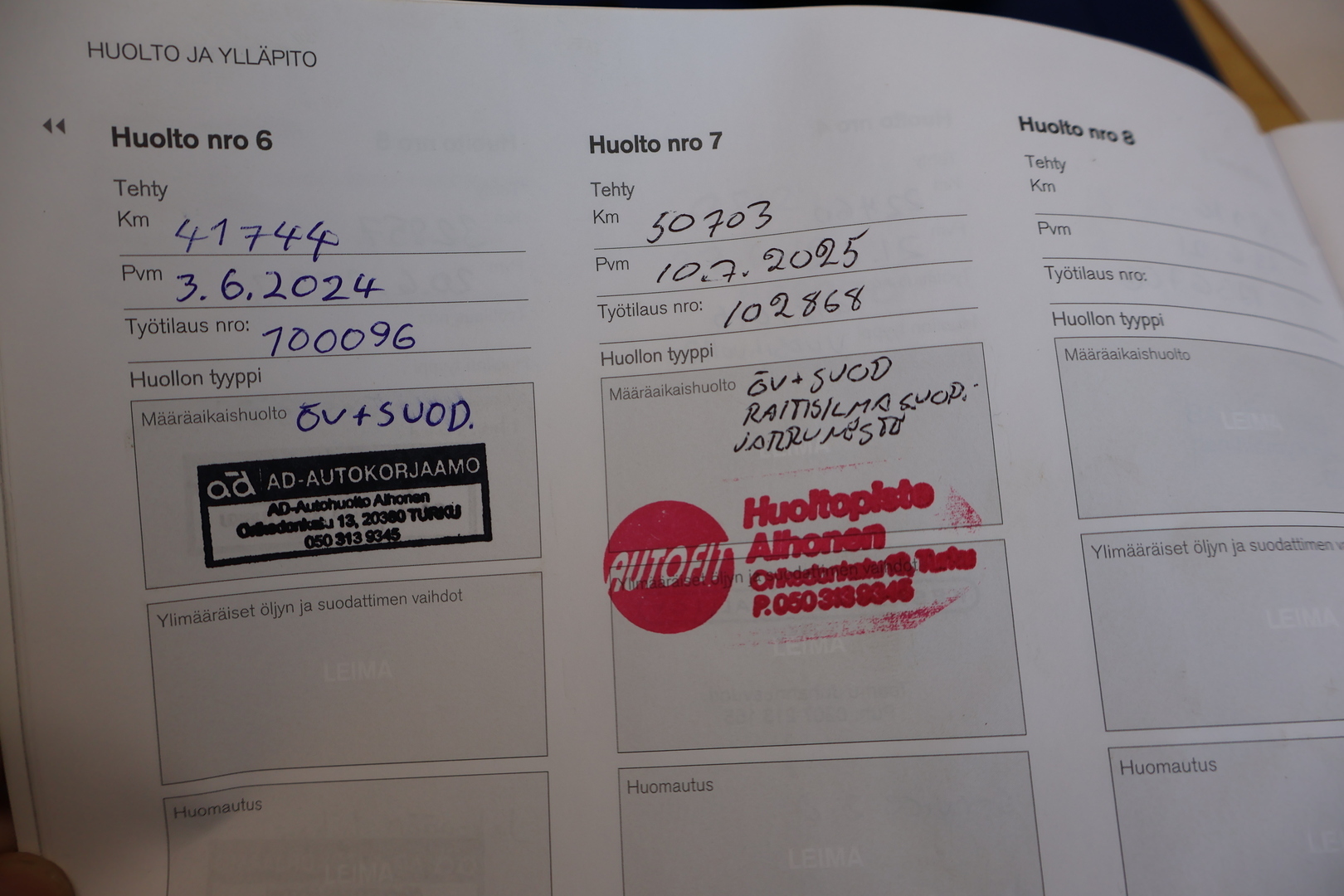 - Täydellinen huoltokirja