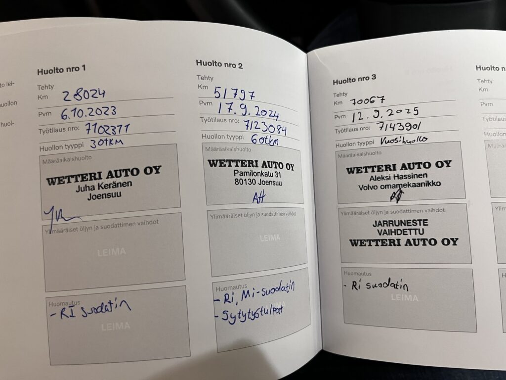 - Hyvä merkkiliikkeen huoltokirja